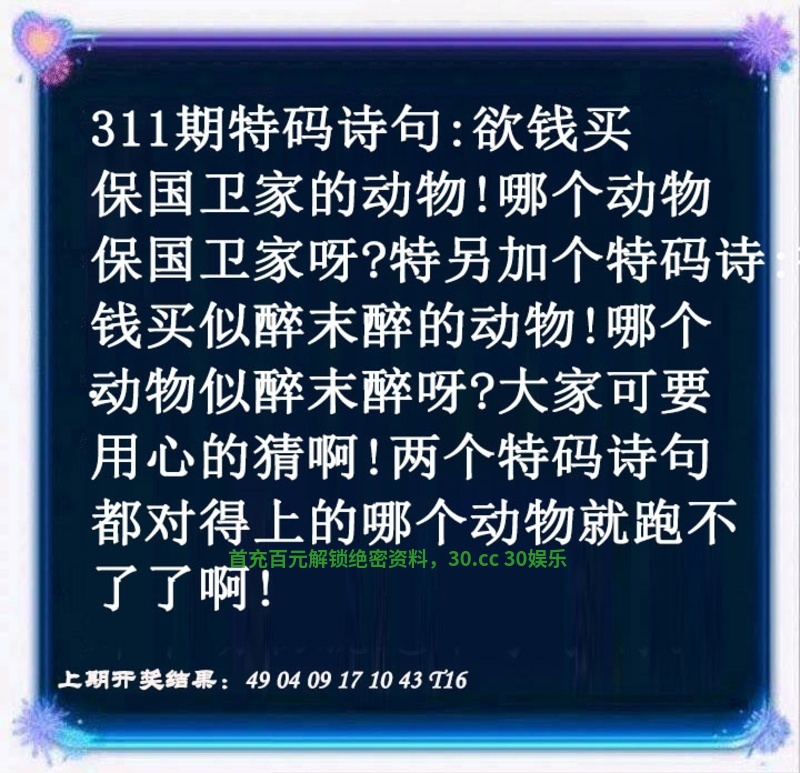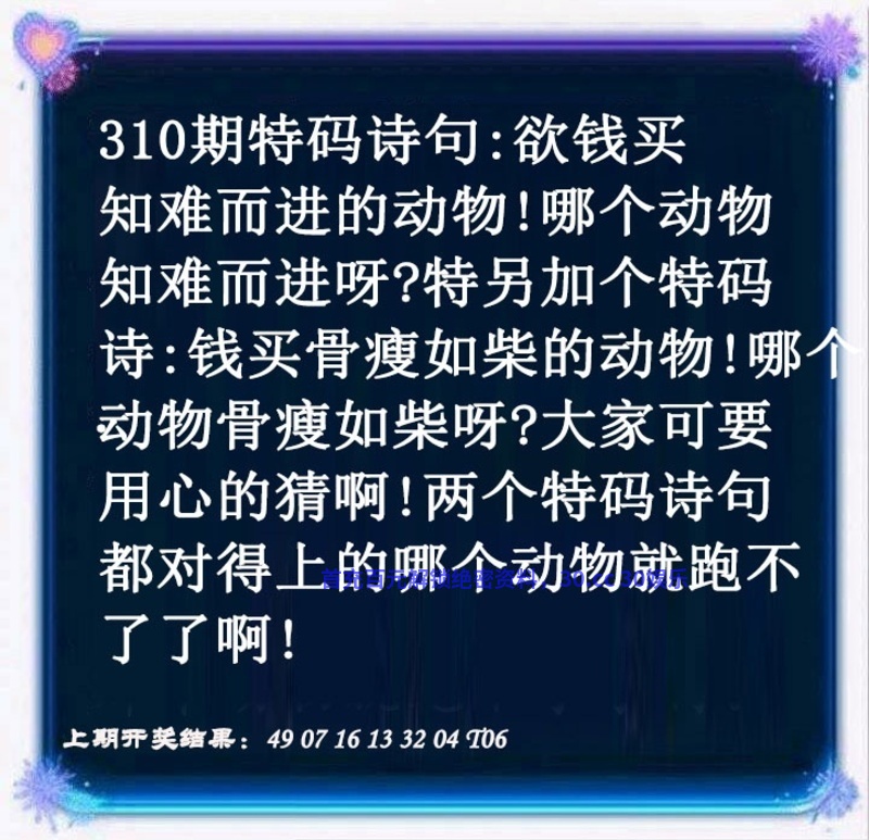 | 310期:绝杀1肖1尾【狗-3尾】开:虎16中 |