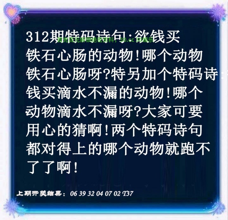 | 308期:绝杀1肖1尾【牛-7尾】开:兔39中 |